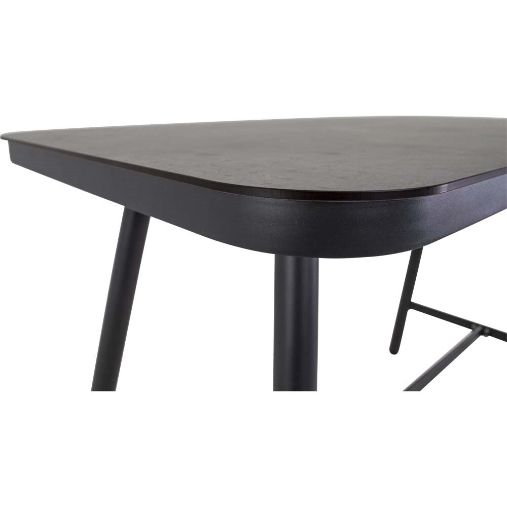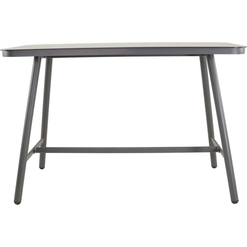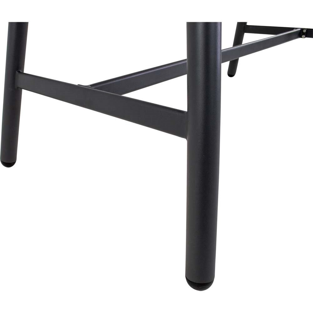 Der Aluminiumrahmen ist pulverbeschichtet in einem matten Anthrazitton, der dem Tisch eine zeitgemäße und edle Note verleiht. Diese Beschichtung schützt das Material vor Witterungseinflüssen und sorgt für eine lange Lebensdauer, wodurch der Bartisch sowohl für den Innen- als auch für den Außenbereich geeignet ist. Die stabilen Tischbeine mit einem Durchmesser von 50mm gewährleisten eine sichere Standfestigkeit und tragen zur Robustheit des gesamten Designs bei.