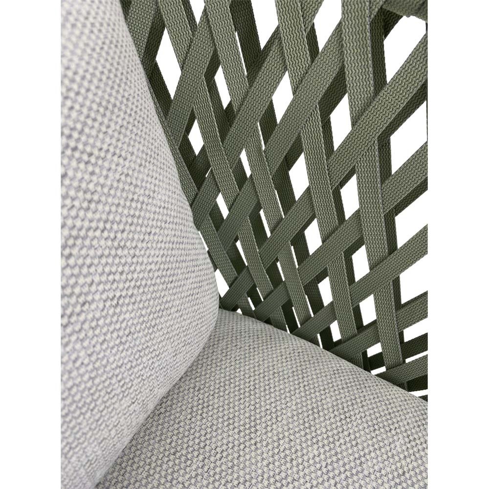 Das Garten Lounge-Set Zaya vereint modernes Design mit hoher Funktionalität und Komfort. Das Set ist aus hochwertigem Flach-Rope gefertigt, das in einem ansprechenden hellgrünen Farbton gehalten ist. Dieses Material zeichnet sich durch seine Langlebigkeit und Witterungsbeständigkeit aus, wodurch es ideal für den Einsatz im Freien geeignet ist. Der Aluminiumrahmen, der in einem eleganten matt-beigen Farbton pulverbeschichtet ist, sorgt nicht nur für Stabilität, sondern verleiht dem Set auch eine zeitgemäße Ästhetik.